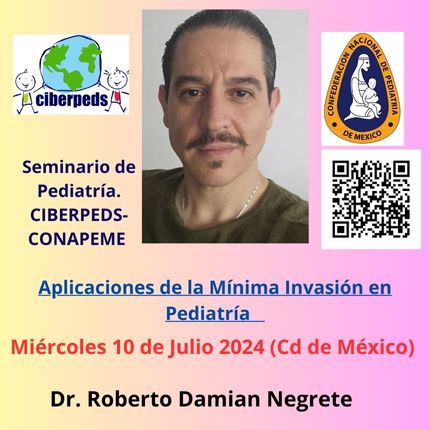 Estimado Pediatra Latinoamericano. Lo invitamos a unirse al seminario web Zoom. Miércoles 10 julio 2024 09:00 p. m. Ciudad de México.                                                                                                                                                                       Aplicaciones de la Mínima Invasión En Pediatría, por el Dr. Roberto Miguel Damian Negrete, Cirujano Pediatra de la Cd de Guadalajara.   Inscríbase en la fecha y horario que más le convengan: