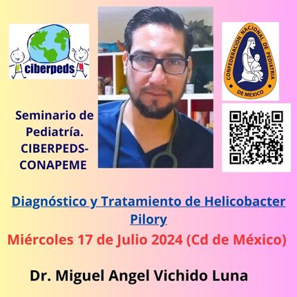 Estimado Pediatra Latinoamericano. Lo invitamos a unirse al seminario web Zoom. Miércoles 17 julio 2024 09:00 p. m. Ciudad de México. Diagnóstico y Tratamiento de Helicobacter Pilory, por el Dr. MiguelAngel Vichido Luna, Gastroenterólogo de la Cd de Oaxaca Oax