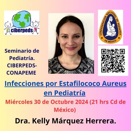 Estimado Pediatra Latinoamericano. Lo invitamos a unirse al seminario web Zoom. Miércoles 30 octubre 2024 09:00 p. m. Ciudad de México. Infecciones por Estafilococo Aureus en Pediatría, por la Dra. Kelly Márquez Herrera, Pediatra Infectóloga de Colombia.