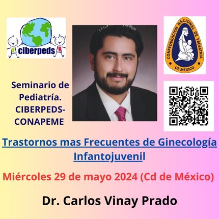 Estimado Pediatra Latinoamericano. Lo invitamos a unirse al seminario web Zoom. Miércoles 29 mayo 2024 09:00 p. m. Ciudad de México. Trastornos más Frecuentes en Ginecologia infanto-juvenil, por el Dr. Carlos Vinay Prado Pediatra de la CD de México. Inscríbase en la fecha y horario que más le convengan: